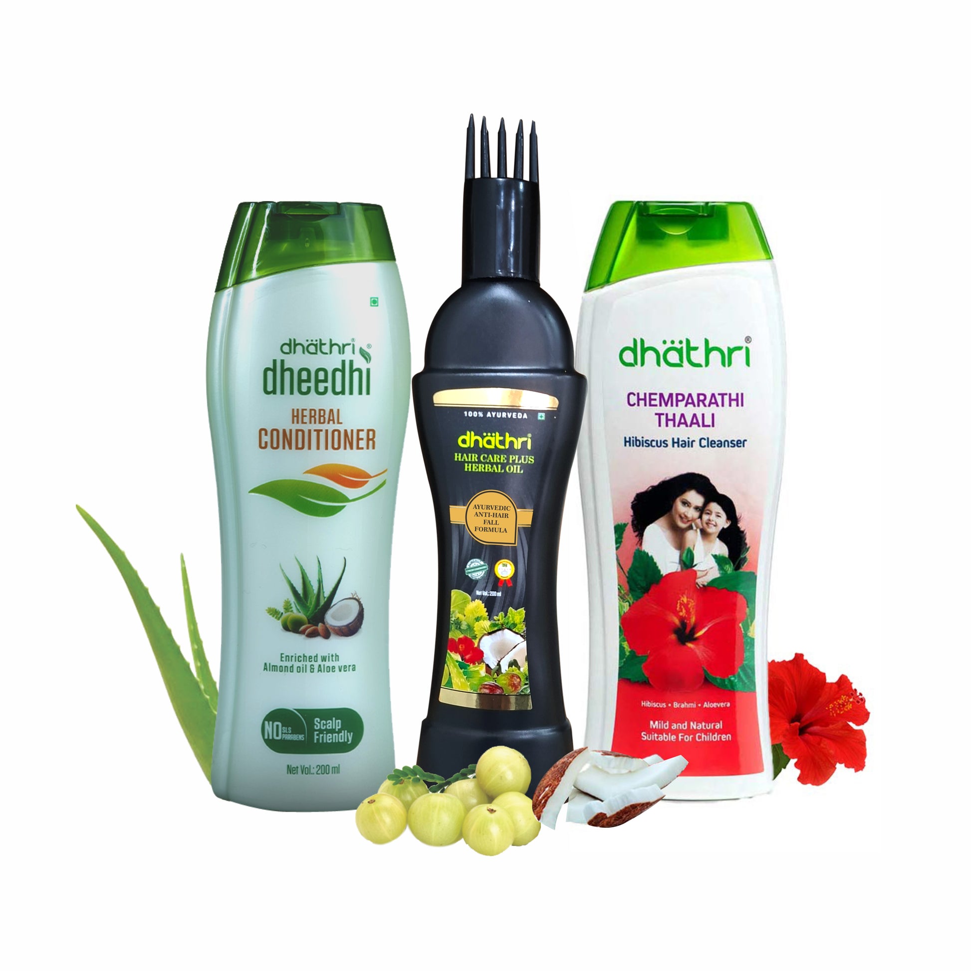 Maintaining healthy, frizz-free hair can be a constant challenge, especially if you have dry or damaged locks. With the Dhathri Frizz Hair Kit, you can make your hair more healthier and beautiful. This comprehensive frizz free hair products kit includes three essential products: Hair Care Plus Herbal Oil, Dheedhi Conditioner, and Chemparathi Thaali. In this article, we will look into why this frizz free hair combo is considered the best for daily hair care, offering you a powerful solution to combat frizz and transform your hair into luscious locks.